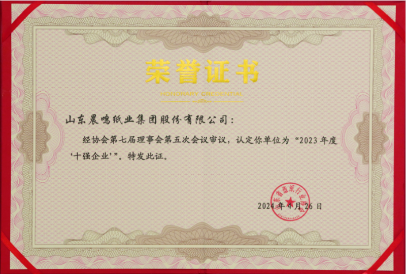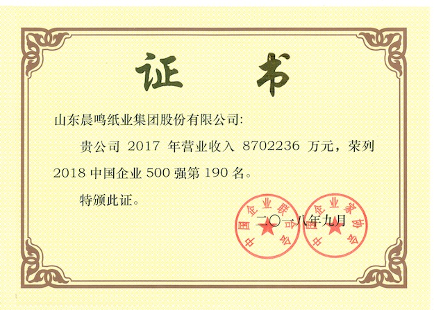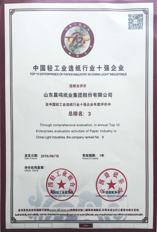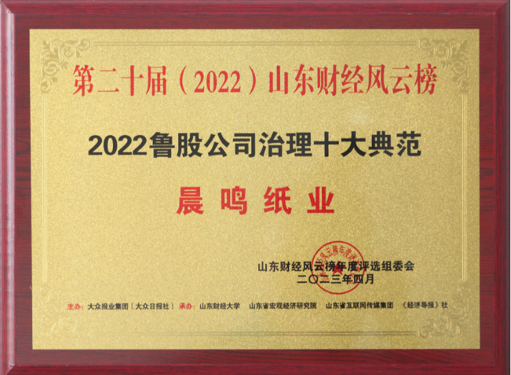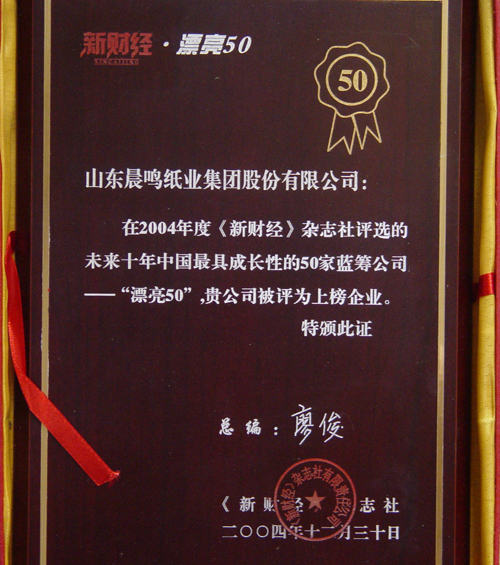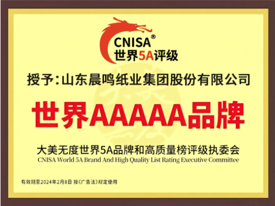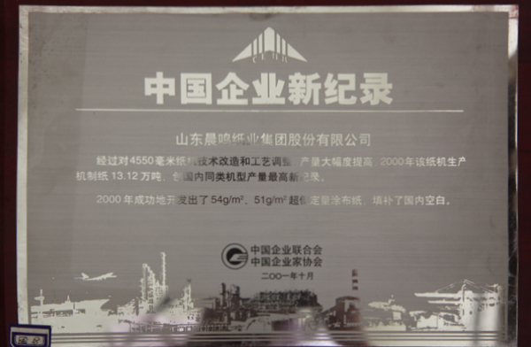 半個多世紀的探索和發(fā)展,讓晨鳴集團榮譽滿冠。晨鳴先后榮獲中國企業(yè)500強、中國制造業(yè)500強、輕工業(yè)全國十佳企業(yè)、中國出口名牌、全國五一勞動獎狀、中國企業(yè)管理杰出貢獻獎、全國生態(tài)文明建設(shè)十大新聞人物、全國精神文明建設(shè)先進單位、中國造紙工業(yè)環(huán)境友好企業(yè)、中國企業(yè)集團納稅五百強、中國工業(yè)行業(yè)排頭兵企業(yè)、全國造紙行業(yè)勞動關(guān)系和諧企業(yè)、山東省循環(huán)經(jīng)濟示范單位、低碳山東標桿企業(yè)等多項榮譽稱號。