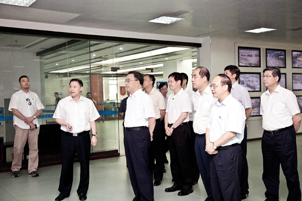 冒著高溫酷熱,胡春華一行深入到湛江晨鳴中控樓及生產(chǎn)車間,邊參觀邊聽取了陳洪國的相關(guān)介紹。胡春華詳細詢問了湛江晨鳴生產(chǎn)設(shè)備、產(chǎn)品、生產(chǎn)經(jīng)營及項目建設(shè)等情況,對湛江晨鳴國際一流的設(shè)備和產(chǎn)品表示贊賞,對晨鳴集團在推進湛江發(fā)展中所作的努力、取得的成果給予肯定。在湛江晨鳴紙機生產(chǎn)線前,陳洪國董事長向胡春華書記介紹說,這條生產(chǎn)線建設(shè)周期雖然只有21個月,卻創(chuàng)造了全球同類工程建設(shè)的最快記錄,也是國內(nèi)目前效益最好的造紙項目,胡春華連聲贊嘆,鼓勵晨鳴要繼續(xù)提高企業(yè)核心競爭力,進一步發(fā)揮好行業(yè)引領(lǐng)帶動作用??疾熘?,陳洪國還就項目后期規(guī)劃及海東新區(qū)岸線生態(tài)治理工程等進行了匯報,胡春華聽后非常高興,要求相關(guān)部門保持暢通的溝通協(xié)調(diào)機制,地方政府要做好服務,幫助企業(yè)解決項目中遇到的問題和困難,共同努力把項目規(guī)劃好、建設(shè)好,促進湛江發(fā)展。