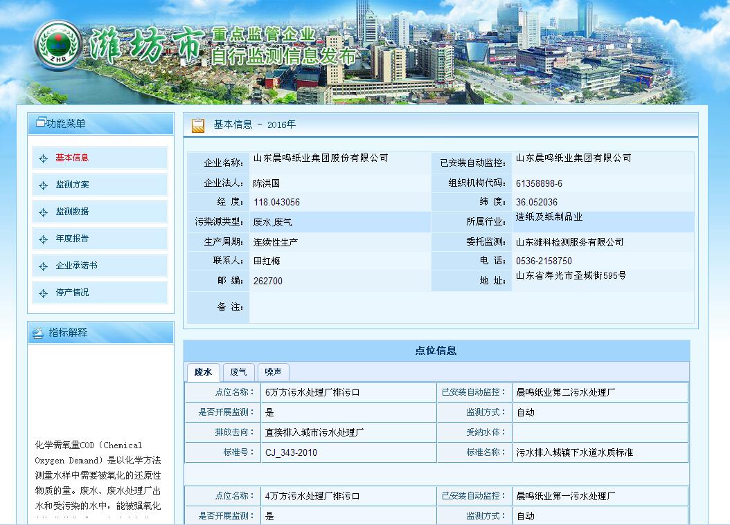 山東晨鳴紙業(yè)集團(tuán)廢水、廢氣自測公示161122