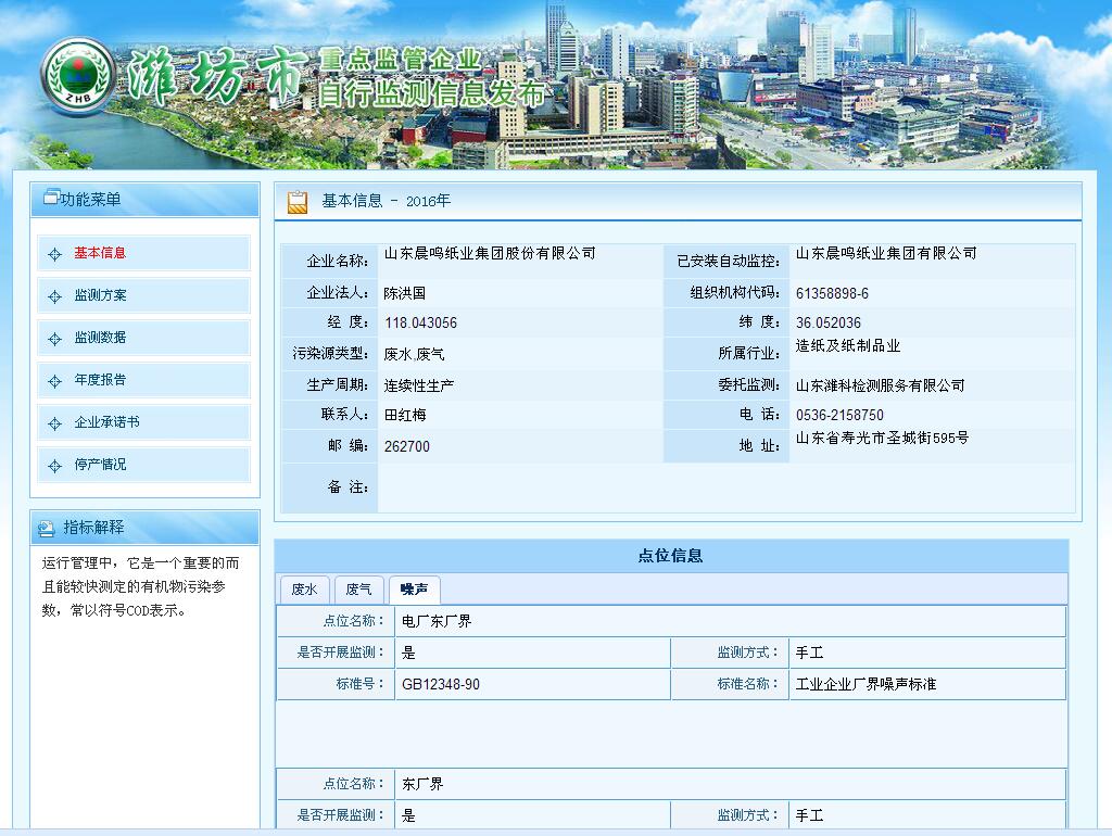 山東晨鳴紙業(yè)集團(tuán)廢水、廢氣自測公示161019
