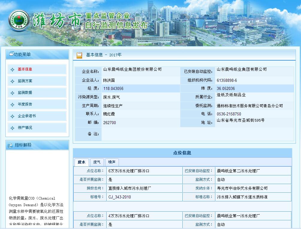 山東晨鳴紙業(yè)集團(tuán)環(huán)境信息公開